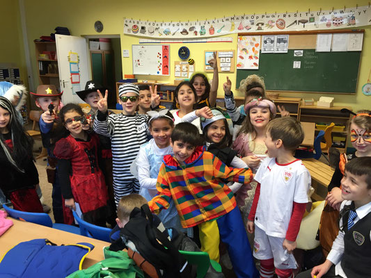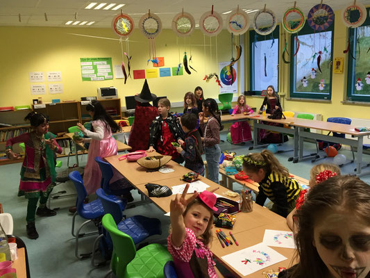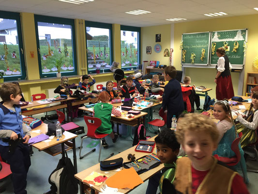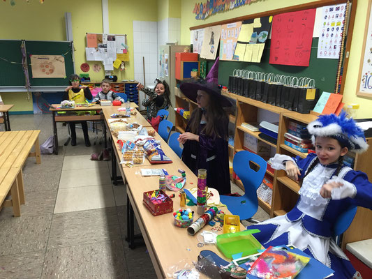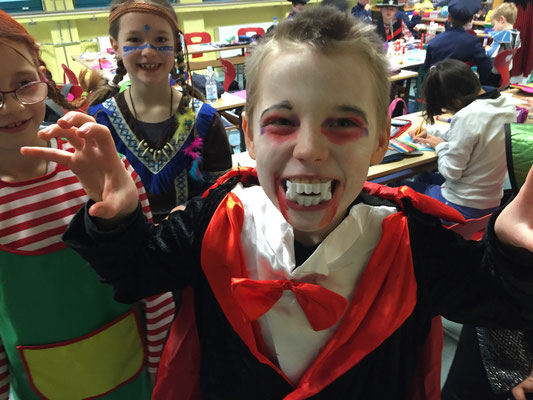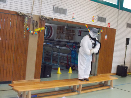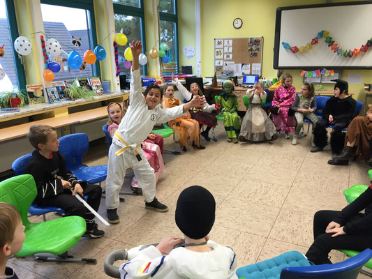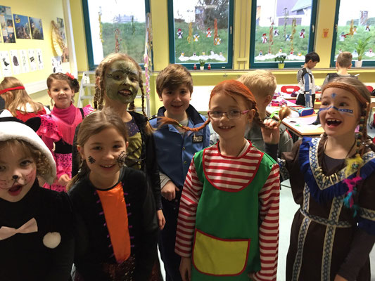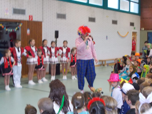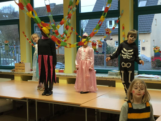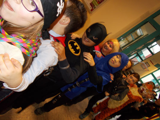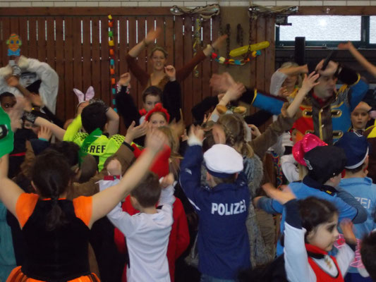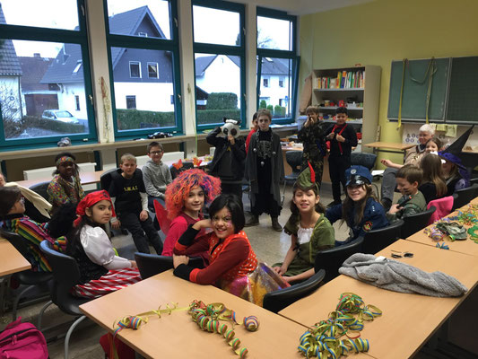 Wie jeck feierten wir dieses Jahr Karneval, zunächst in den Klassen bei tollem Buffet mit reichlich Chips und Gummibärchen, bis wir dann mit einer Polonaise gemeinsam in die Turnhalle gingen und dort die große Schulkarnevalsfeier starteten.