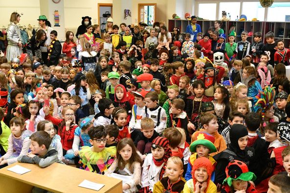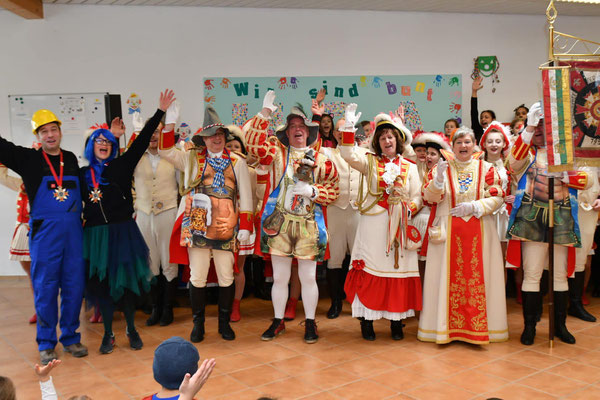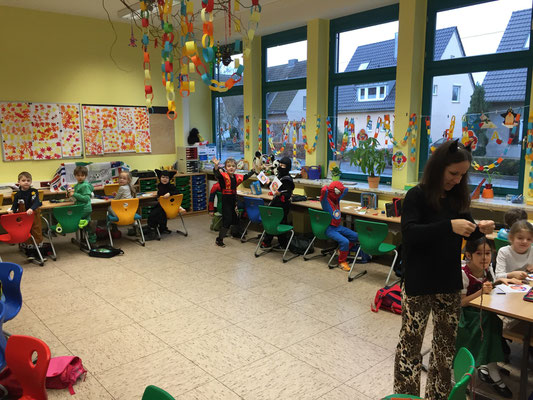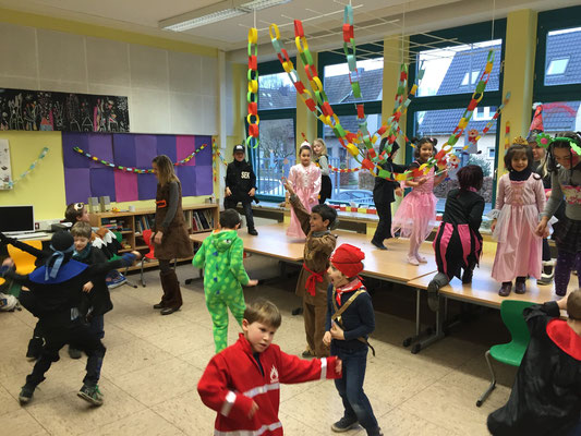 der Schule Weiberfastnacht gefeiert! Mit einer Polonaise zogen alle Kinder in